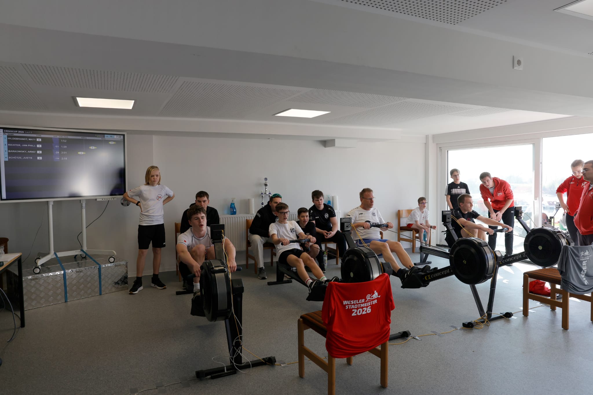 Die nun siebte Weseler Indoor-Rowing Stadtmeisterschaft fand nach der guten Erfahrung des letzten Jahres erneut in Verbindung mit dem Ruhrpott-Niederrhein-Ergocup statt. Während in der Wertung der Stadtmeisterschaft Weseler Einwohner und Mitglieder Weseler Vereine antreten, ist der RN-Ergocup eine gemeinschaftliche dreigliedrige Veranstaltung mit der RG Bottrop (dort Wettkampfdistanz 500m) und dem RV Oberhausen (dort Wettkampfdistanz 1000m), die für jeden offen ist. Über die Distanz von 2000 Metern konnten die Teilnehmer der beiden Veranstaltungen zum Abschluss der Wintersaison in Wesel ihre Leistung zeigen, wobei hier der Spaß doch im Vordergrund stand. Eine gelungene Veranstaltung bei sonnigem Frühlingswetter mit motivierten Sportlern und Zuschauern!